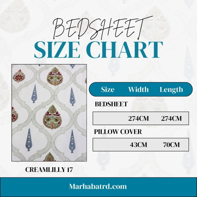 Marhaba 100% Cotton (220TC) Hand Block Print Bedsheet, CREAMLILLY 13