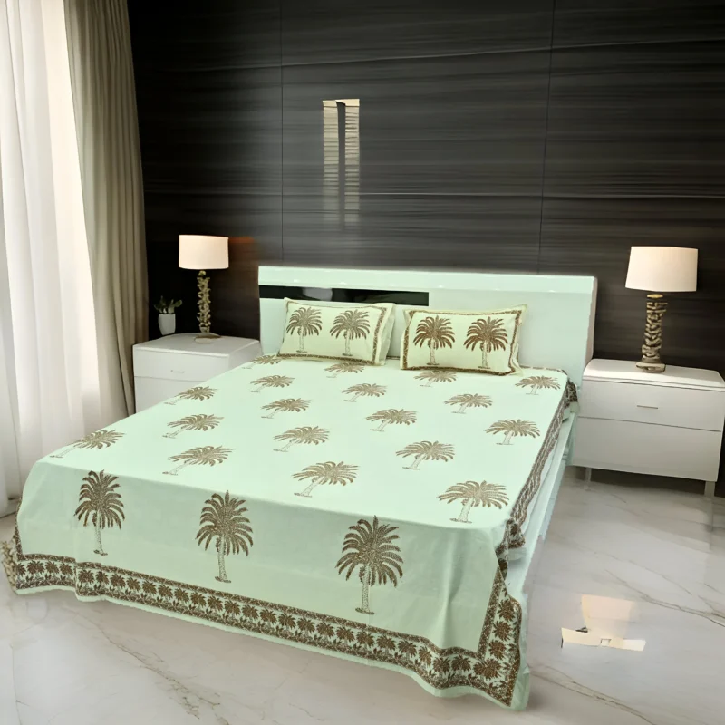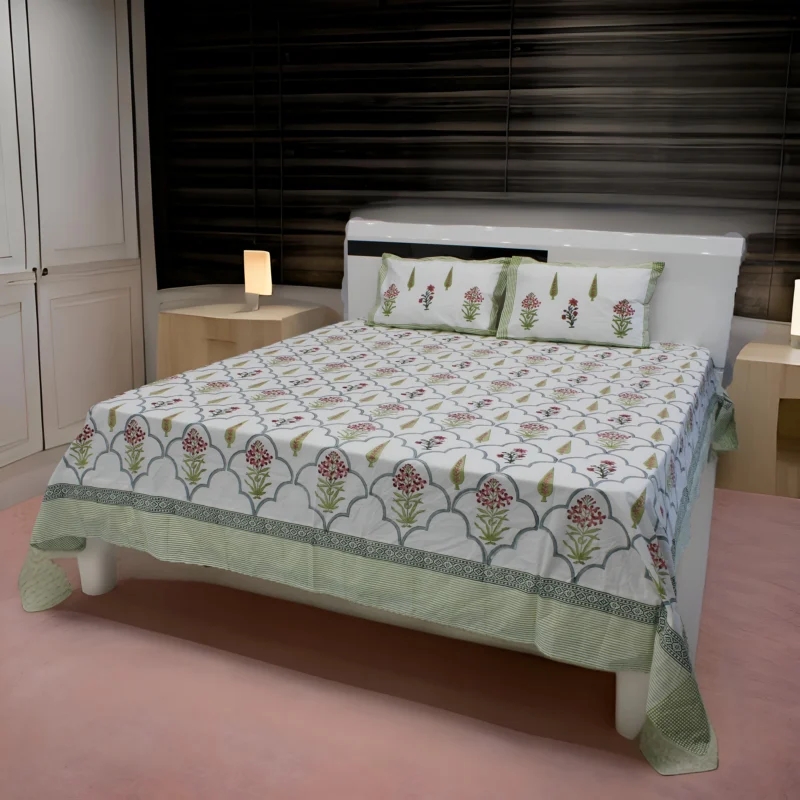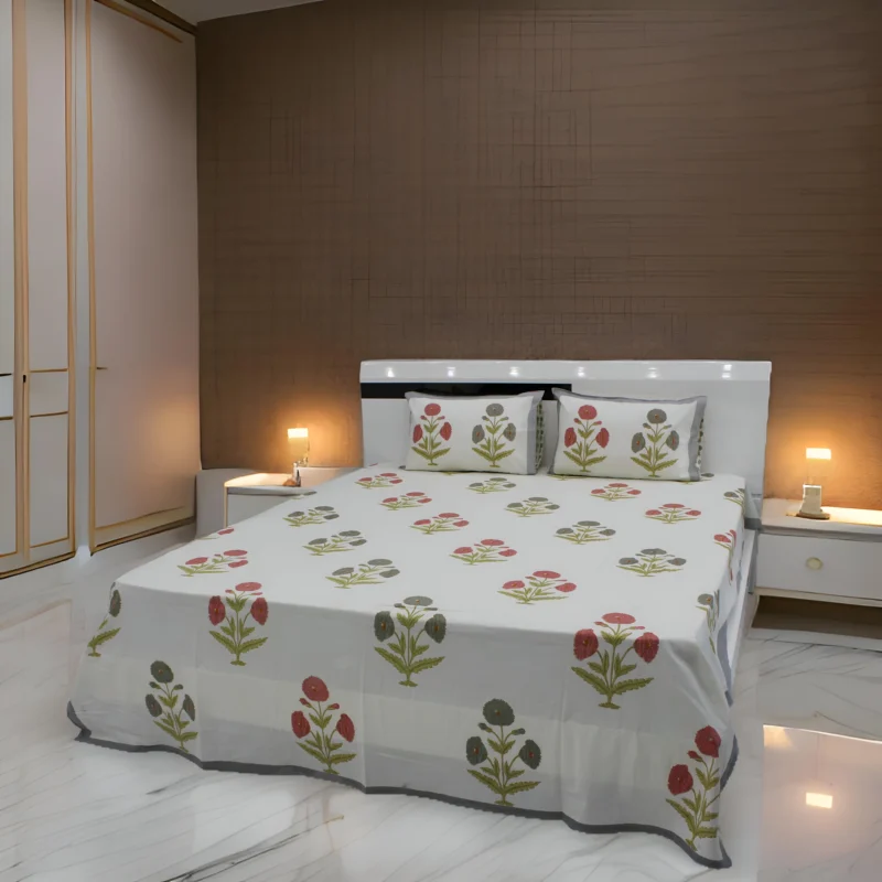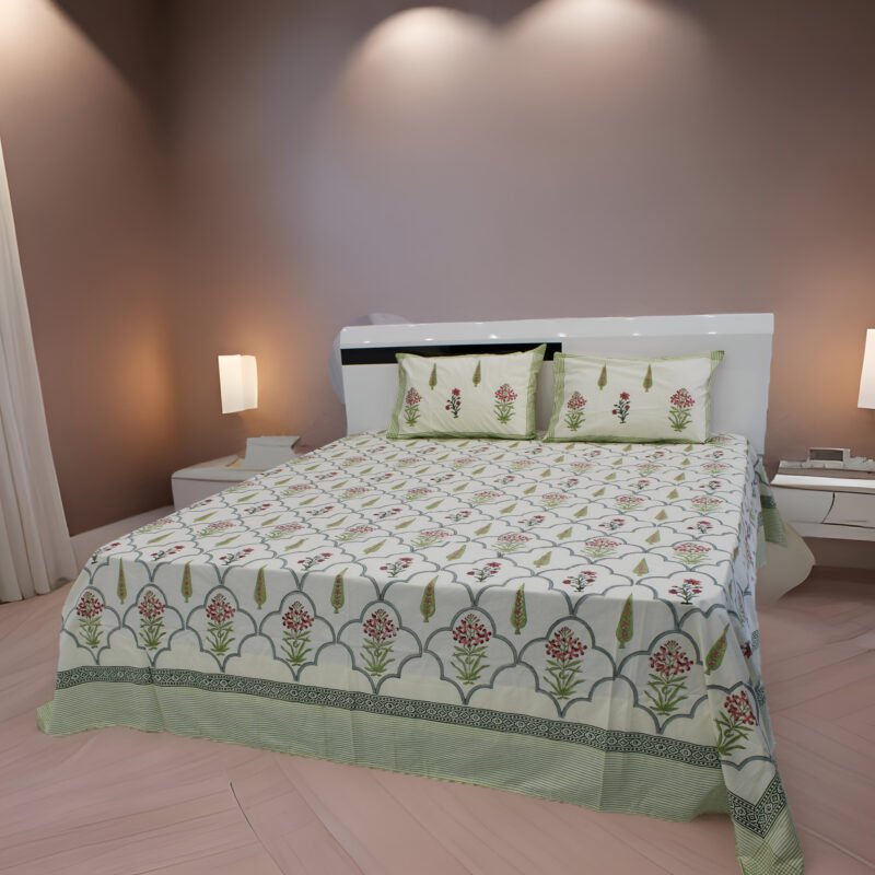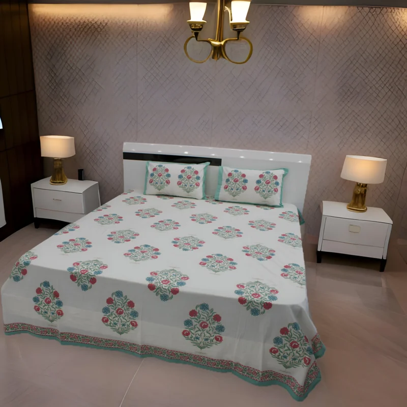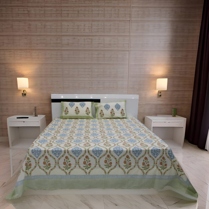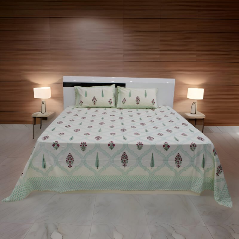 100% Cotton (120TC) Marhaba Hand Block Bedsheet | NATURAL 18