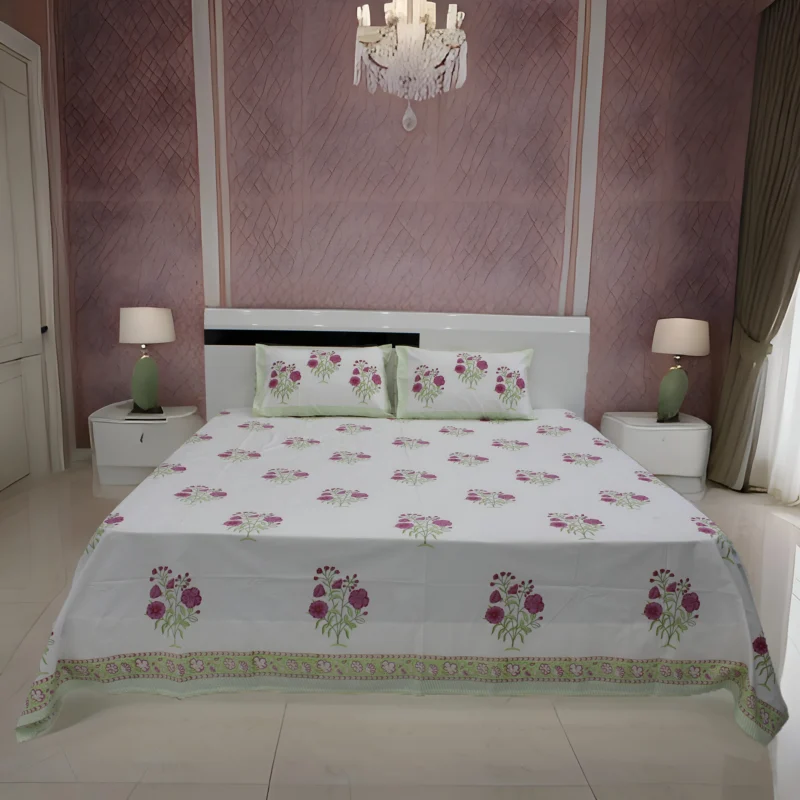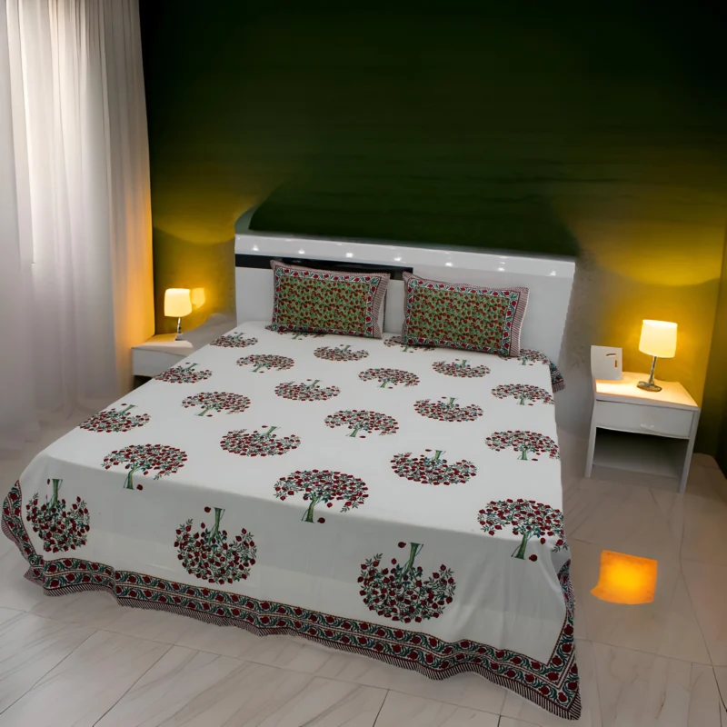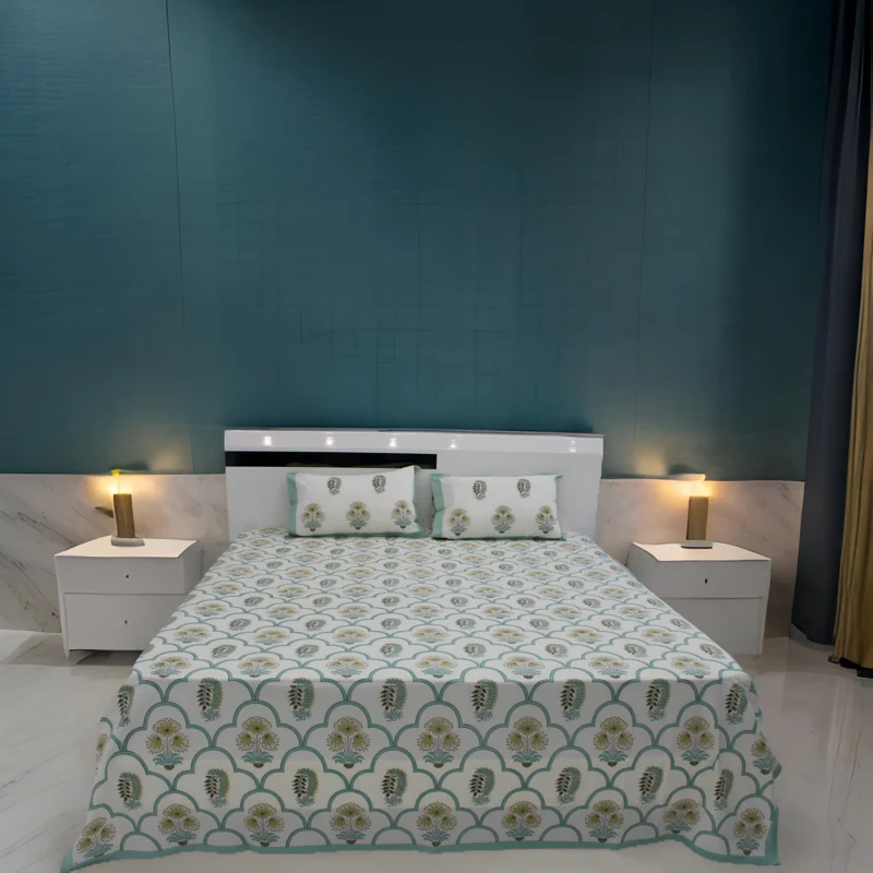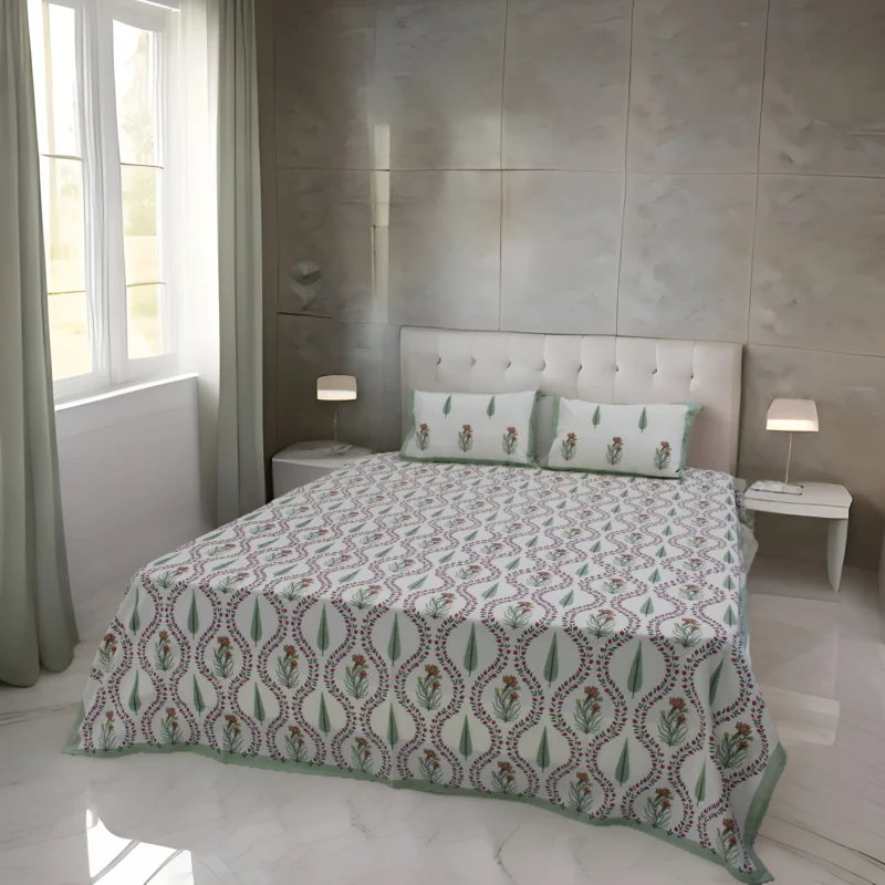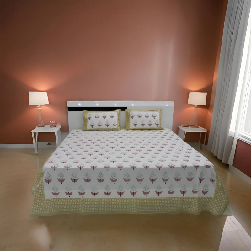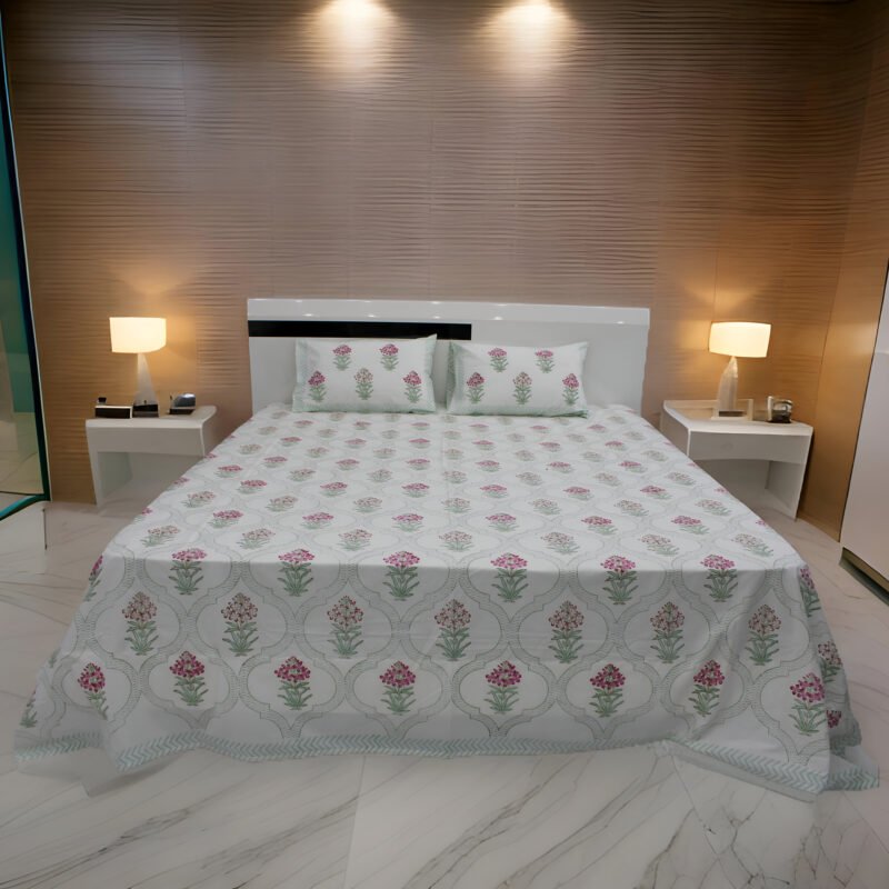 Marhaba Hand Block Print Bedsheet with Pillow Cover , PARKHEL 09
