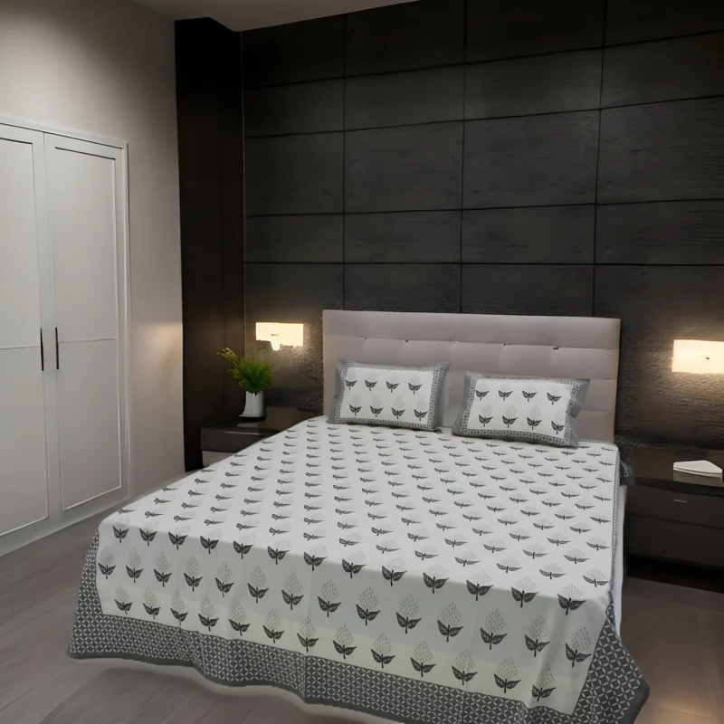 Premium Dubble Bedsheet Set With Pillow Cover 100% Cotton (120TC) - NATURAL 23