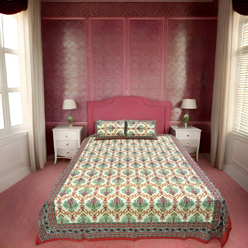 100% Cotton Screen Printed Bedsheet (120TC) | MOGHUL 04